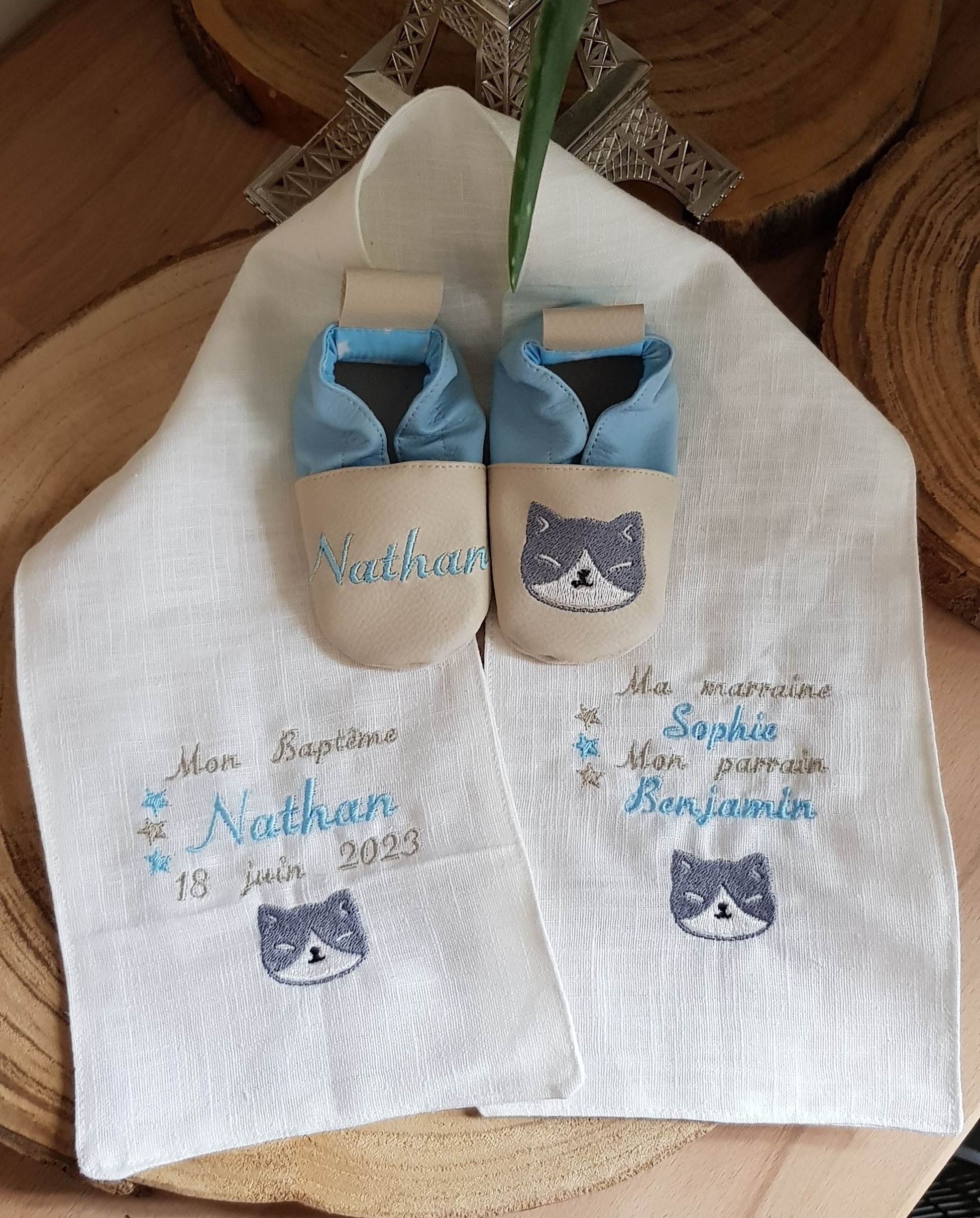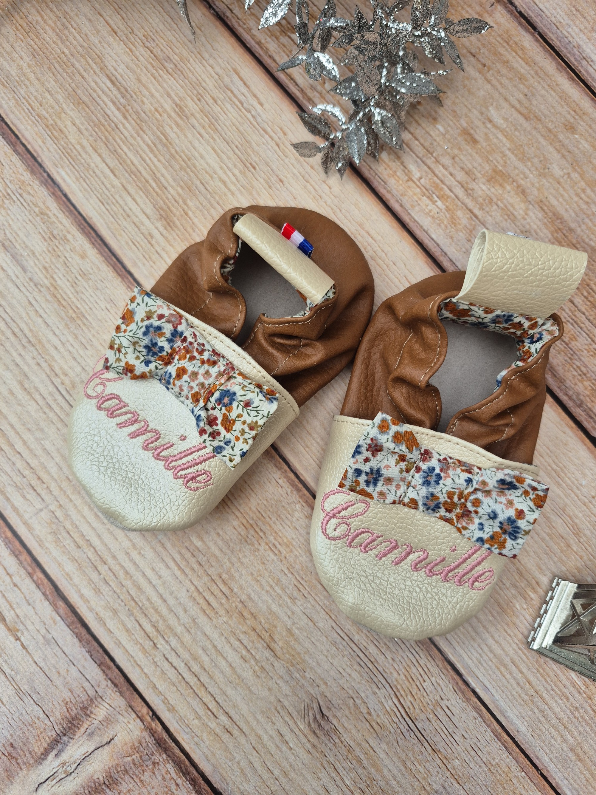 Qu'est ce que je fabrique? Depuis 2013 je suis artisane et je fabrique des chaussons souples personnalisés de la naissance au 48, des trousses, sacs (polochon, maternelle, à main), pochettes, écharpes de baptême, bouillote, coussin de lecture le tout personnalisé de A à Z avec mes clients.