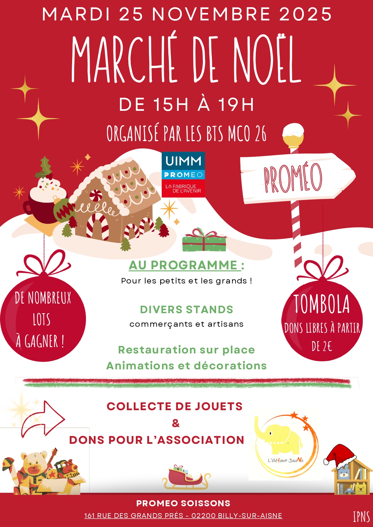 Organisé par les BTS MCO 26, le marché de Noël est l'occasion de rassembler exposants, étudiants et visiteurs dans une ambiance festive et conviviale, tout en soutenant une association caritative grâce aux fonds récoltés.