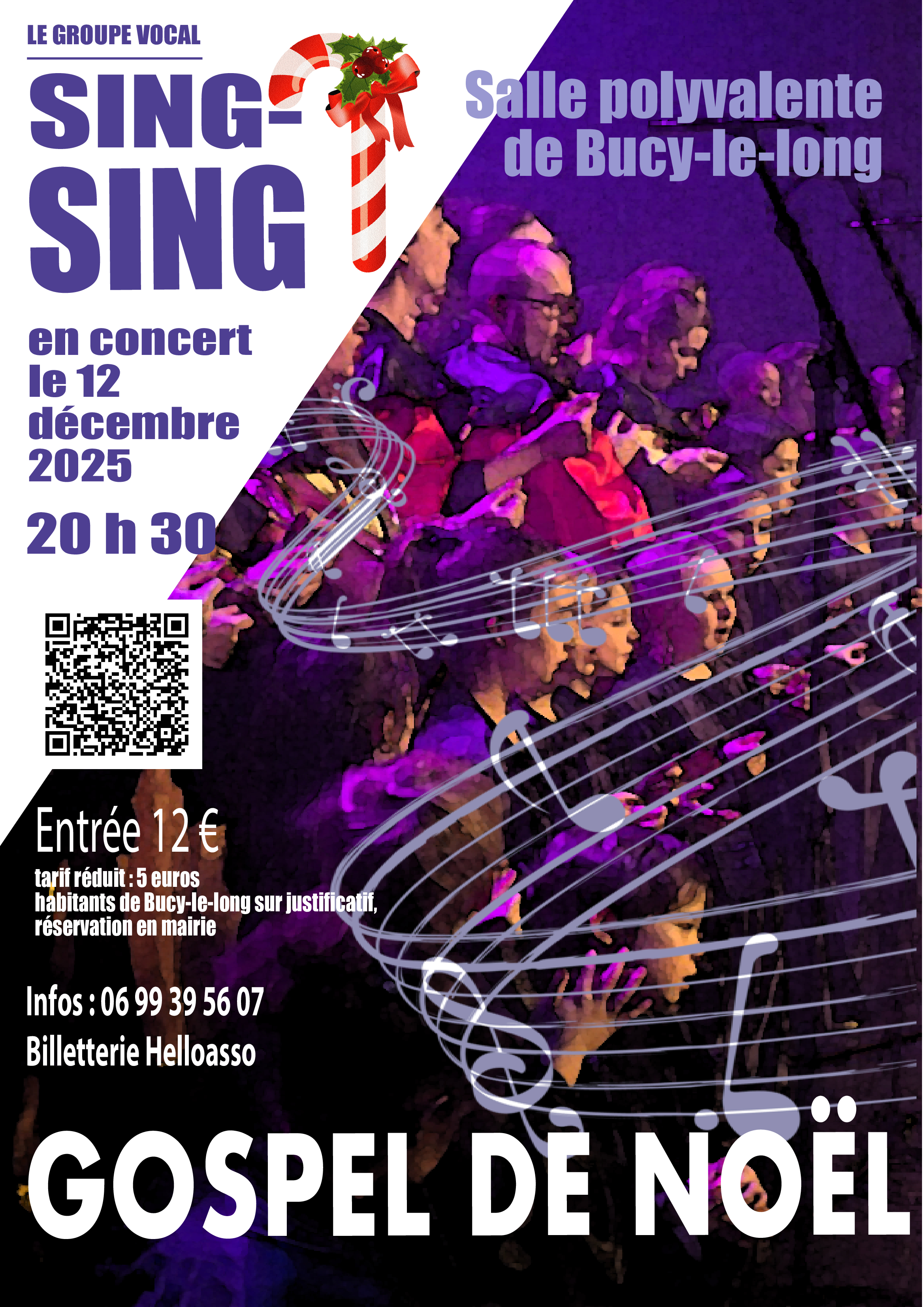 Le Groupe Vocal Sing Sing vous propose son concert de gospel de Noël, avec des titres légendaires arrangés pour l'occasion : Douce Nuit, Minuit Chrétien, Jingle Bells. Le tout interprété par un chœur de 55 chnateurs accompagnés d'un orchestre, autour d'un petit verre qui réchauffe le cœur !