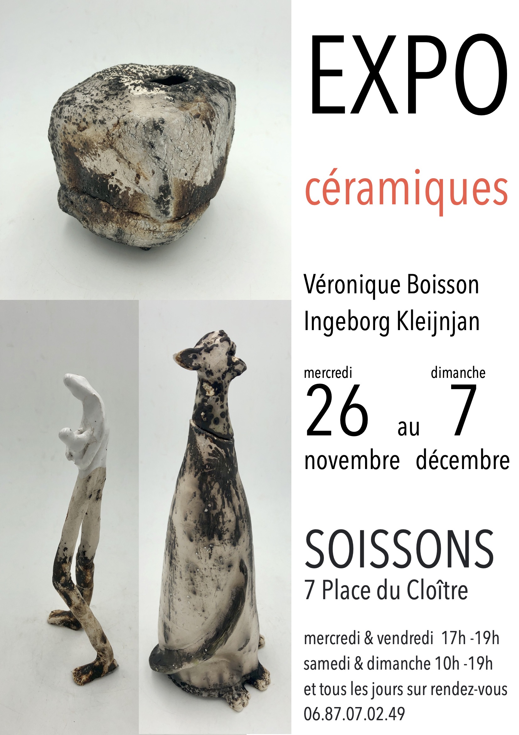 Deux céramistes du Soissonnais, Véronique Boisson et Ingeborg Kleijnjan, exposent leur travail récent.