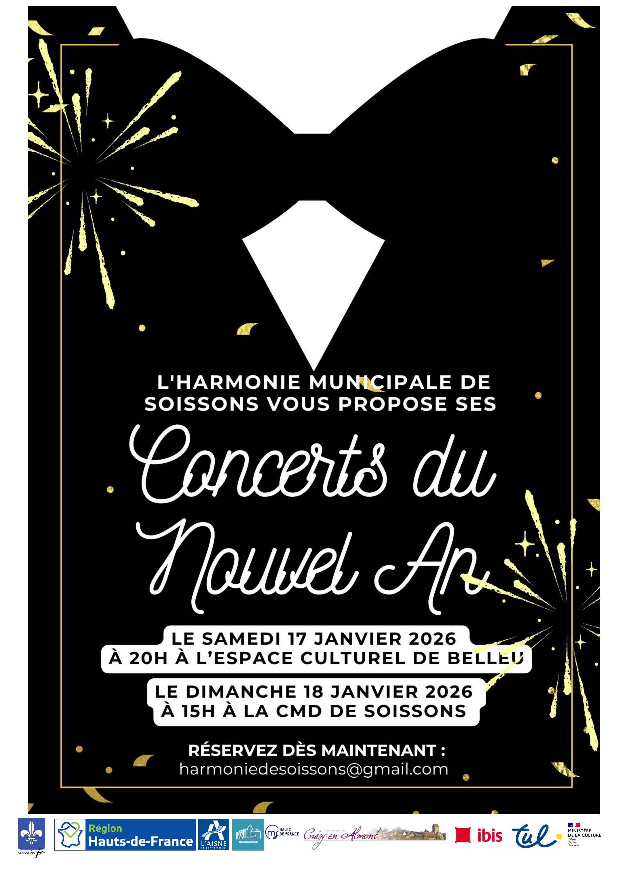 L'Harmonie Municipale de Soissons, sous la direction de Pierre LEMAIRE et de Julien DERLON, vous propose d'assister à son concert du Nouvel An. Un programme festif pour toute la famille afin de commencer l’année en musique.