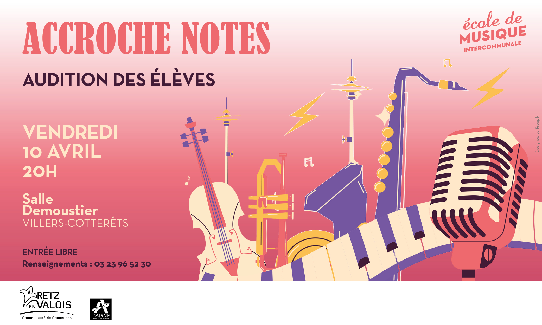 A l'occasion de ses Accroches Notes, l'Ecole de musique intercommunale vous invite à l'audition de ses élèves. L'occasion pour eux de partager leur travail et pour vous, de découvrir leur discipline.