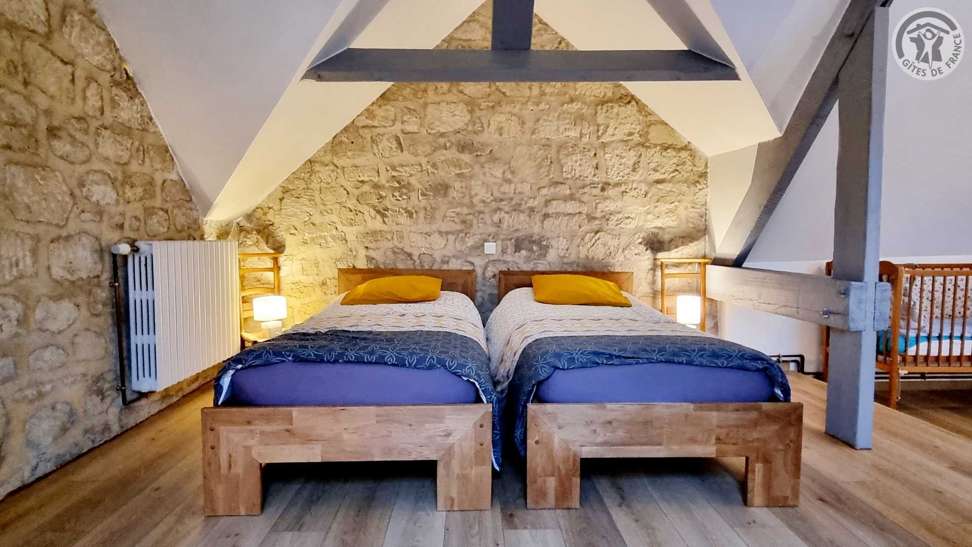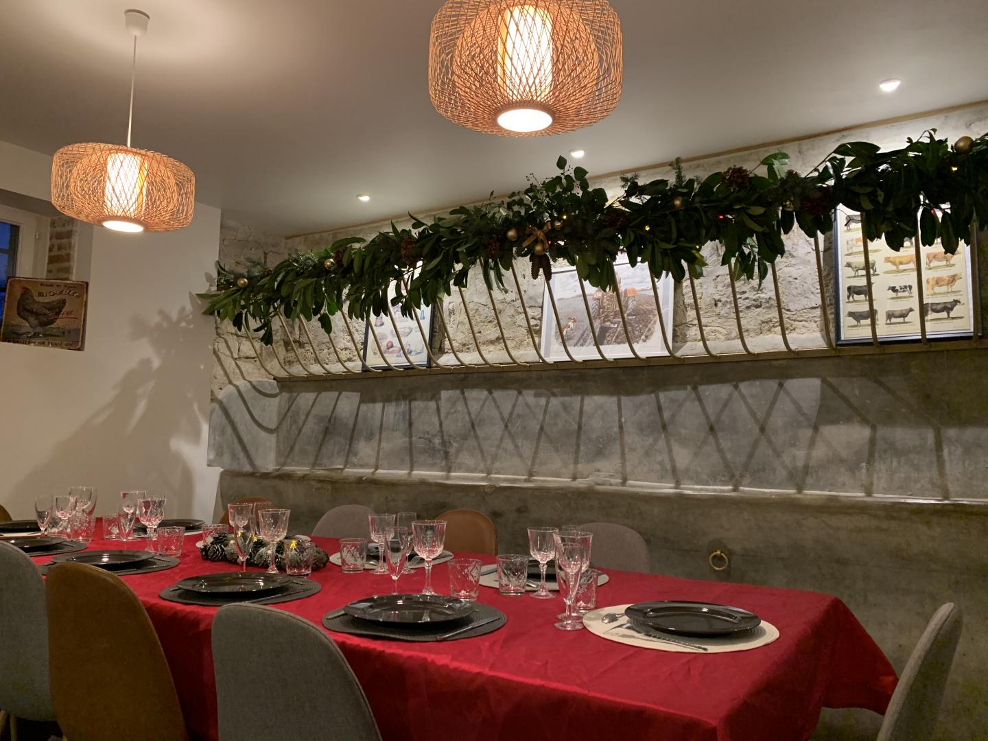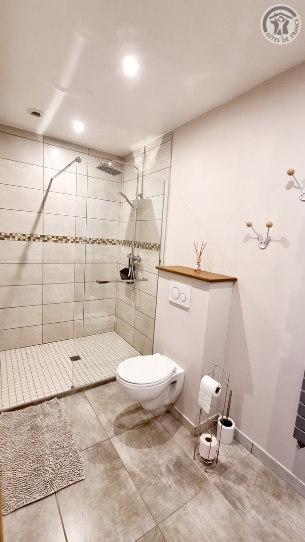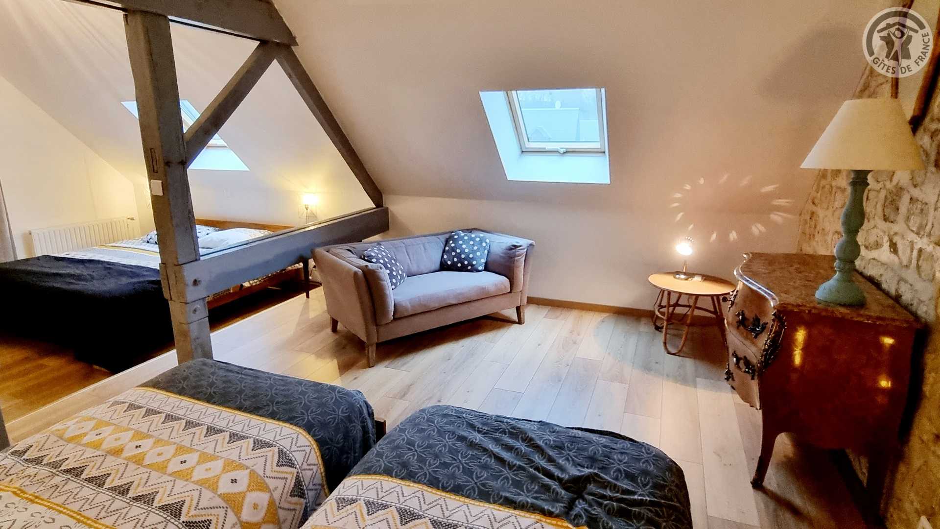 Gîte tout inclus (draps, linge de toilette, ménage de fin séjour, charges). Fêtes, réunions comportant de la musique et/ou de l'alcool interdites, le gite est un lieu de calme et de repos. Longère de 250 m². Jardin clos 900 m². Patio couvert. Cour intérieure. Marches entre chaque pièce. Non adapté aux personnes à mobilité réduite. Stationnement dans la cour. Rez-de-chaussée : espace détente avec billard et flipper, cuisine avec coin repas, salon, 1 chambre (2 lits en 90x200 modulables en 1 lit de 180x200) avec salle d'eau privative (douche 150x100cm, WC). A l'étage : espace détente sur mezzanine, 1 chambre (1 lit en 180x200 et 2 lits en 90x200) avec salle de bains privative (baignoire et WC). 1 chambre (4 lits de 90x200 modulables en lits de 2 personnes) avec salle de bains privative et WC indépendant. Poêle à bois. Spa de 6 places maximum (forfait spa à 200€ pour le séjour , à réserver directement auprès des propriétaires et à régler sur place). billard et flipper à disposition