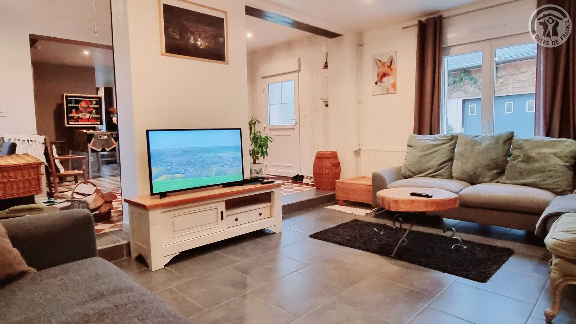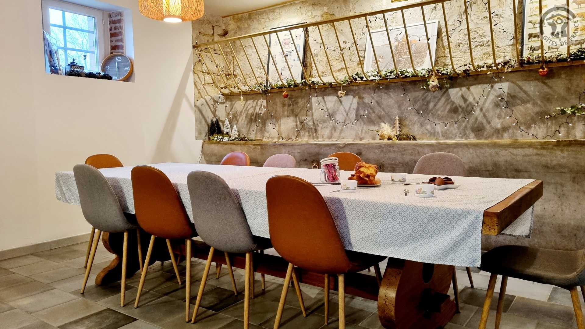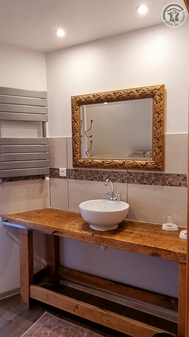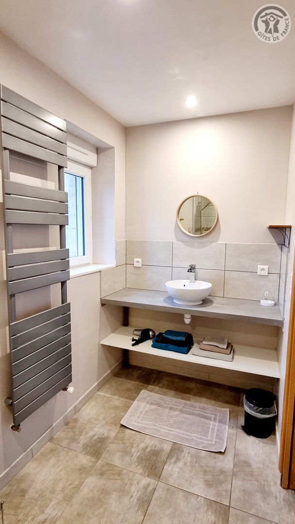 Gîte tout inclus (draps, linge de toilette, ménage de fin séjour, charges). Fêtes, réunions comportant de la musique et/ou de l'alcool interdites, le gite est un lieu de calme et de repos. Longère de 250 m². Jardin clos 900 m². Patio couvert. Cour intérieure. Marches entre chaque pièce. Non adapté aux personnes à mobilité réduite. Stationnement dans la cour. Rez-de-chaussée : espace détente avec billard et flipper, cuisine avec coin repas, salon, 1 chambre (2 lits en 90x200 modulables en 1 lit de 180x200) avec salle d'eau privative (douche 150x100cm, WC). A l'étage : espace détente sur mezzanine, 1 chambre (1 lit en 180x200 et 2 lits en 90x200) avec salle de bains privative (baignoire et WC). 1 chambre (4 lits de 90x200 modulables en lits de 2 personnes) avec salle de bains privative et WC indépendant. Poêle à bois. Spa de 6 places maximum (forfait spa à 200€ pour le séjour , à réserver directement auprès des propriétaires et à régler sur place). billard et flipper à disposition