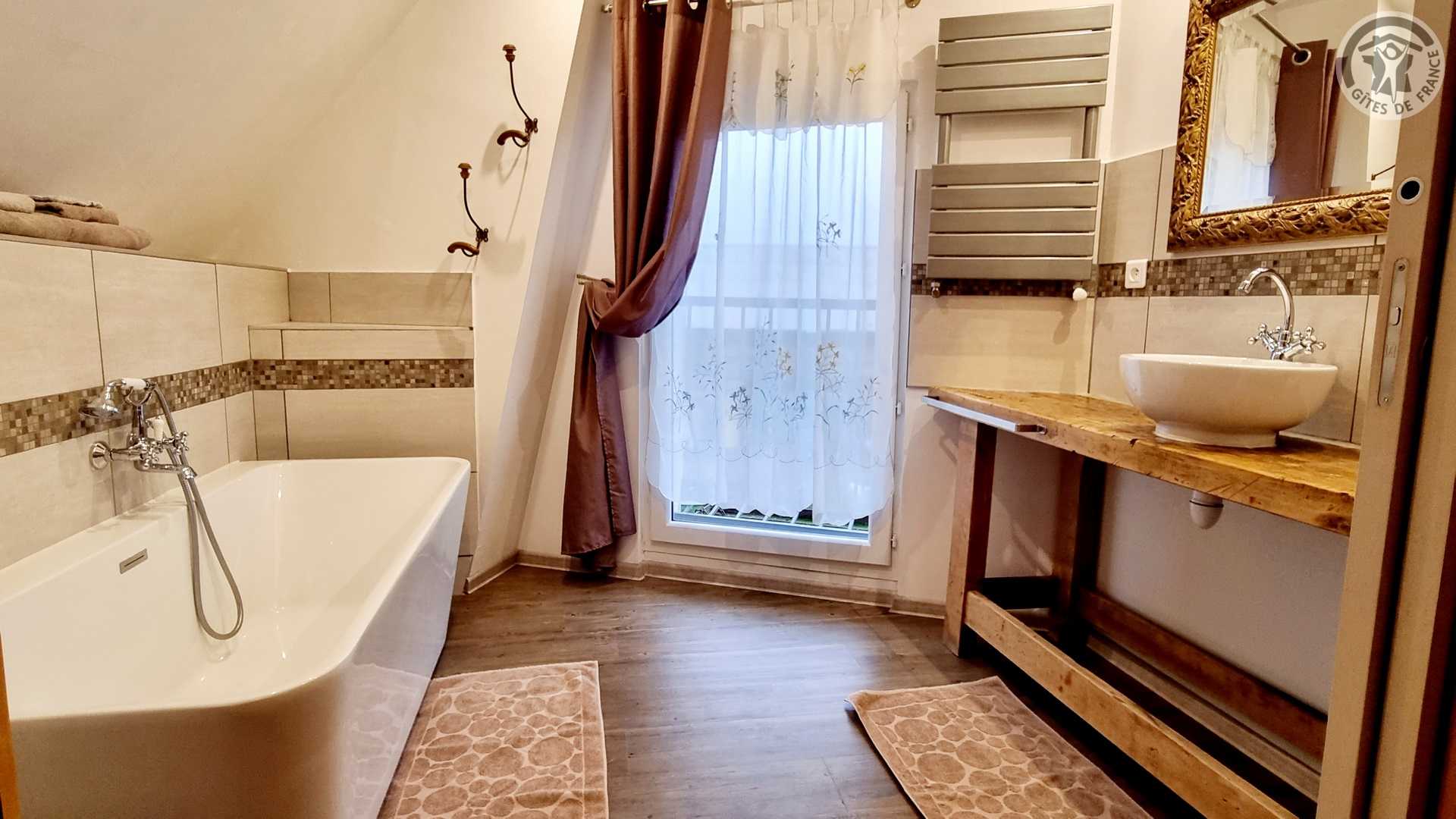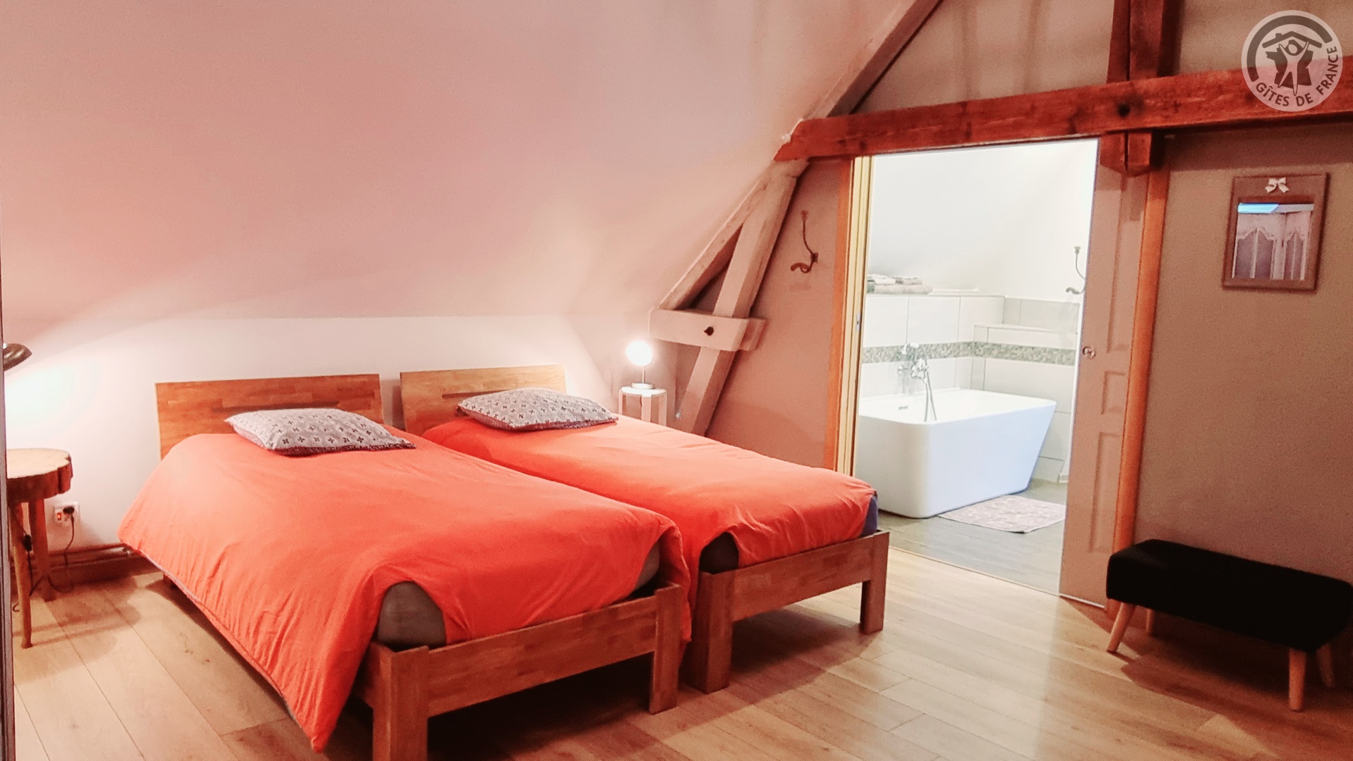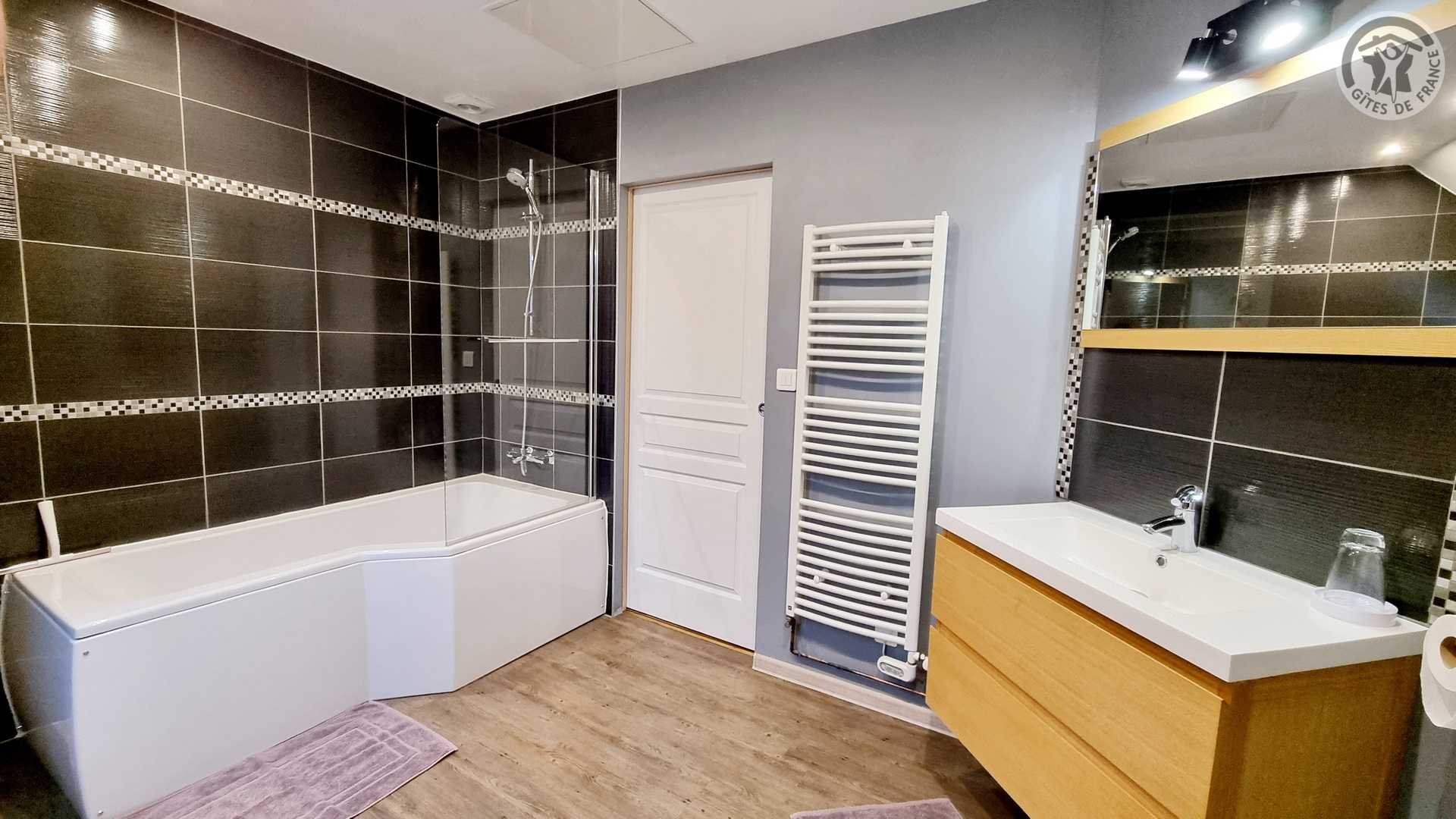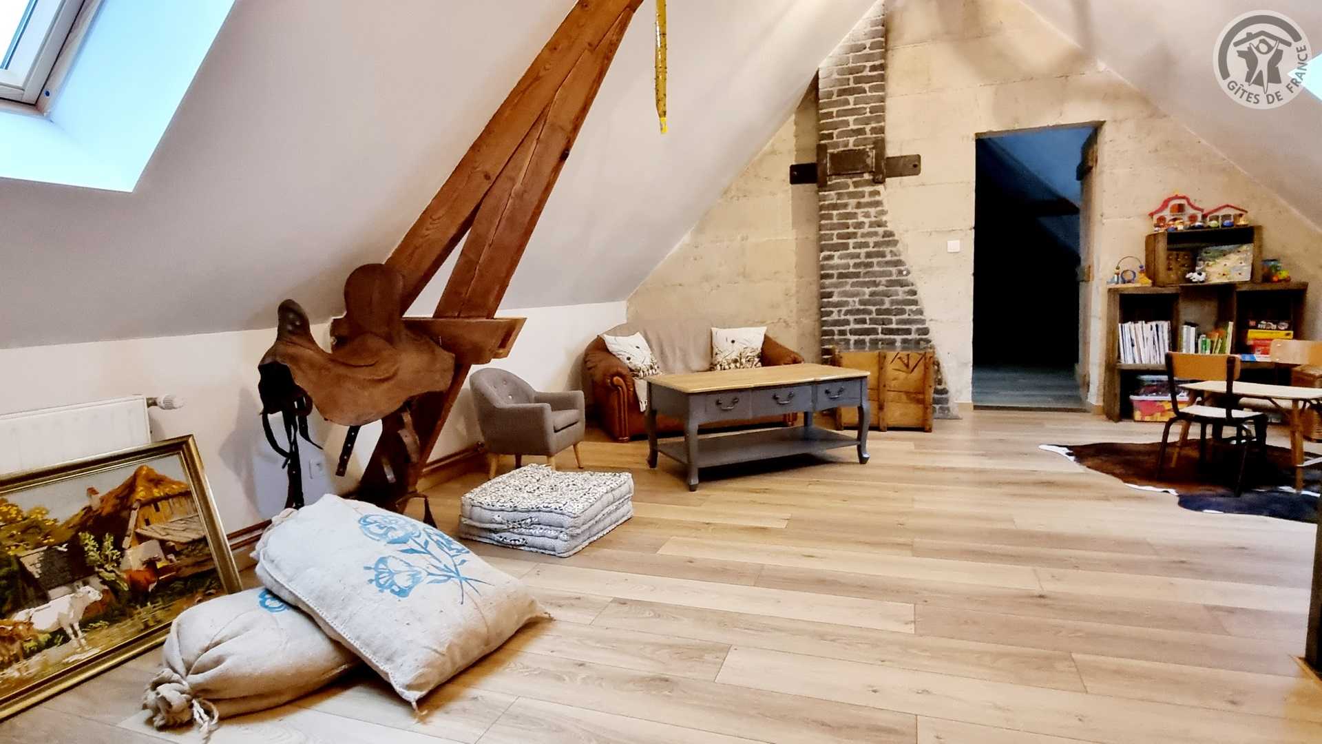 Gîte tout inclus (draps, linge de toilette, ménage de fin séjour, charges). Fêtes, réunions comportant de la musique et/ou de l'alcool interdites, le gite est un lieu de calme et de repos. Longère de 250 m². Jardin clos 900 m². Patio couvert. Cour intérieure. Marches entre chaque pièce. Non adapté aux personnes à mobilité réduite. Stationnement dans la cour. Rez-de-chaussée : espace détente avec billard et flipper, cuisine avec coin repas, salon, 1 chambre (2 lits en 90x200 modulables en 1 lit de 180x200) avec salle d'eau privative (douche 150x100cm, WC). A l'étage : espace détente sur mezzanine, 1 chambre (1 lit en 180x200 et 2 lits en 90x200) avec salle de bains privative (baignoire et WC). 1 chambre (4 lits de 90x200 modulables en lits de 2 personnes) avec salle de bains privative et WC indépendant. Poêle à bois. Spa de 6 places maximum (forfait spa à 200€ pour le séjour , à réserver directement auprès des propriétaires et à régler sur place). billard et flipper à disposition