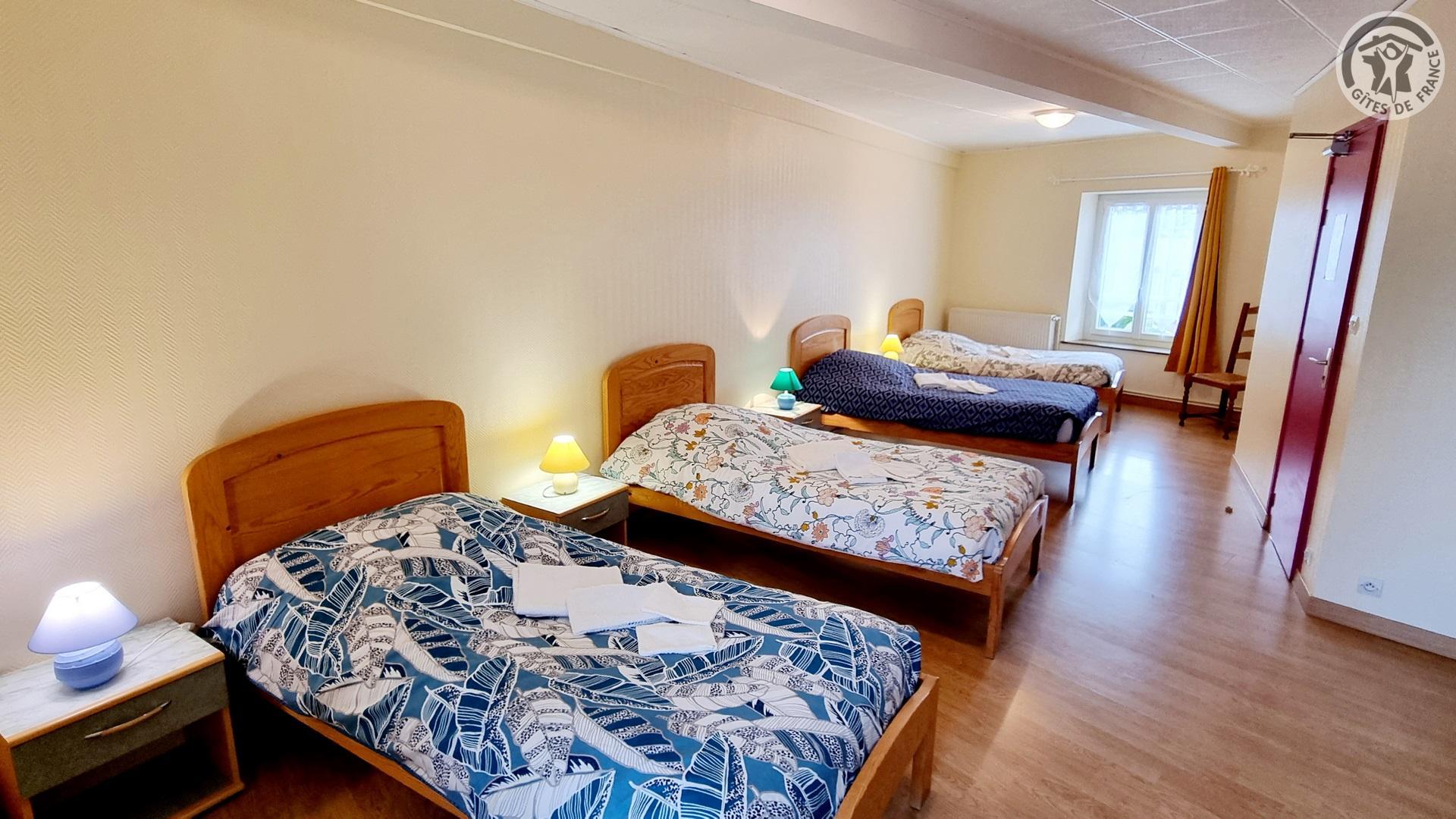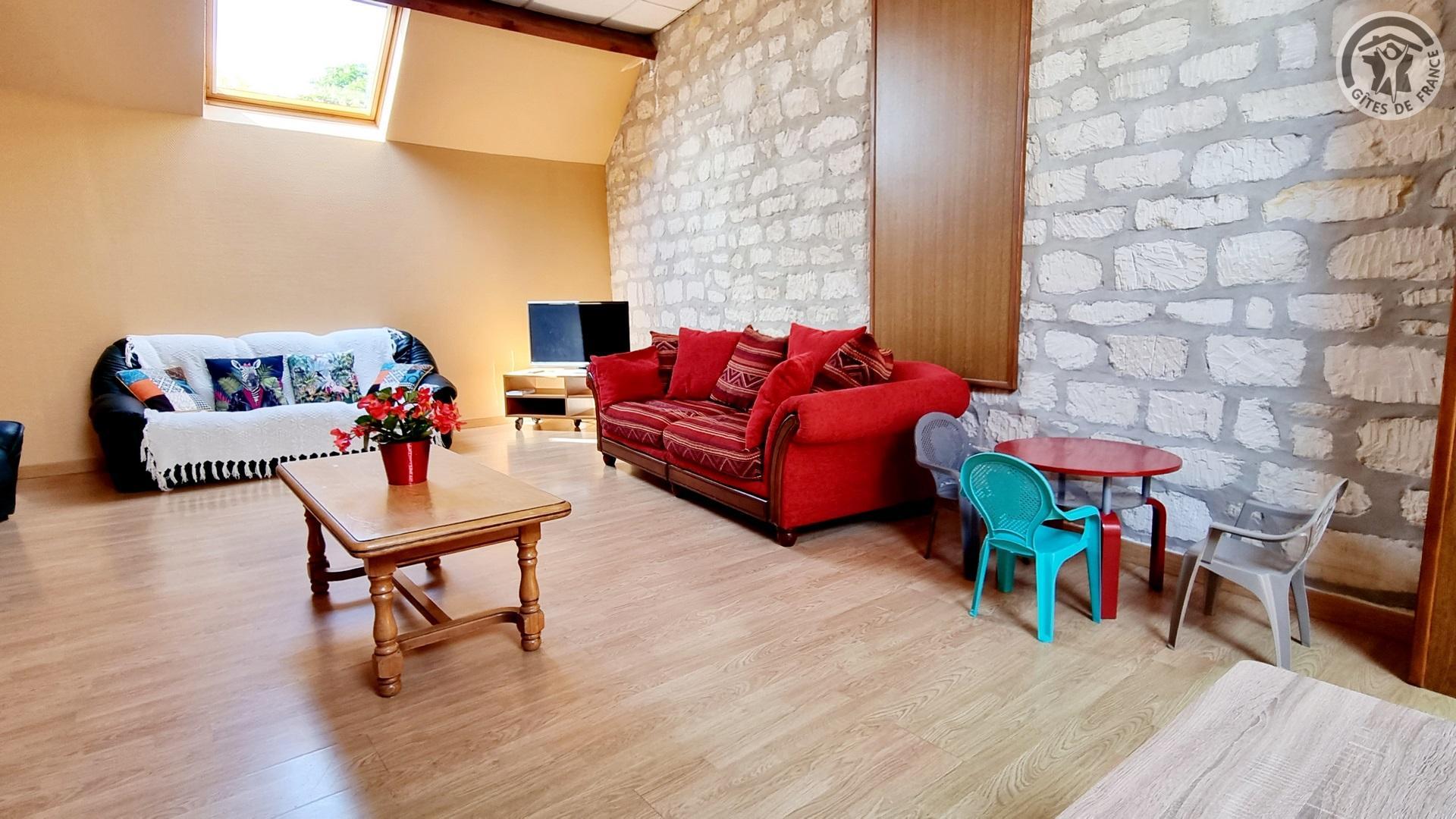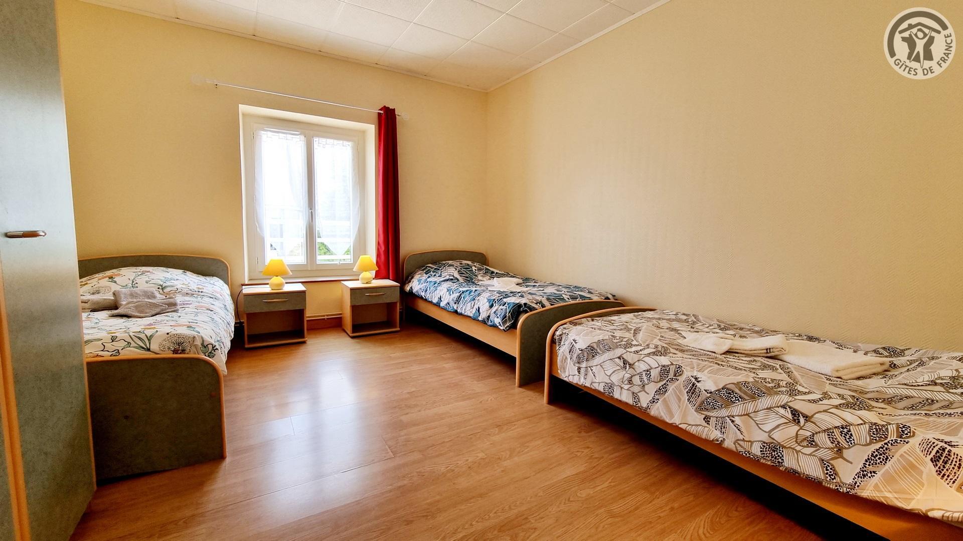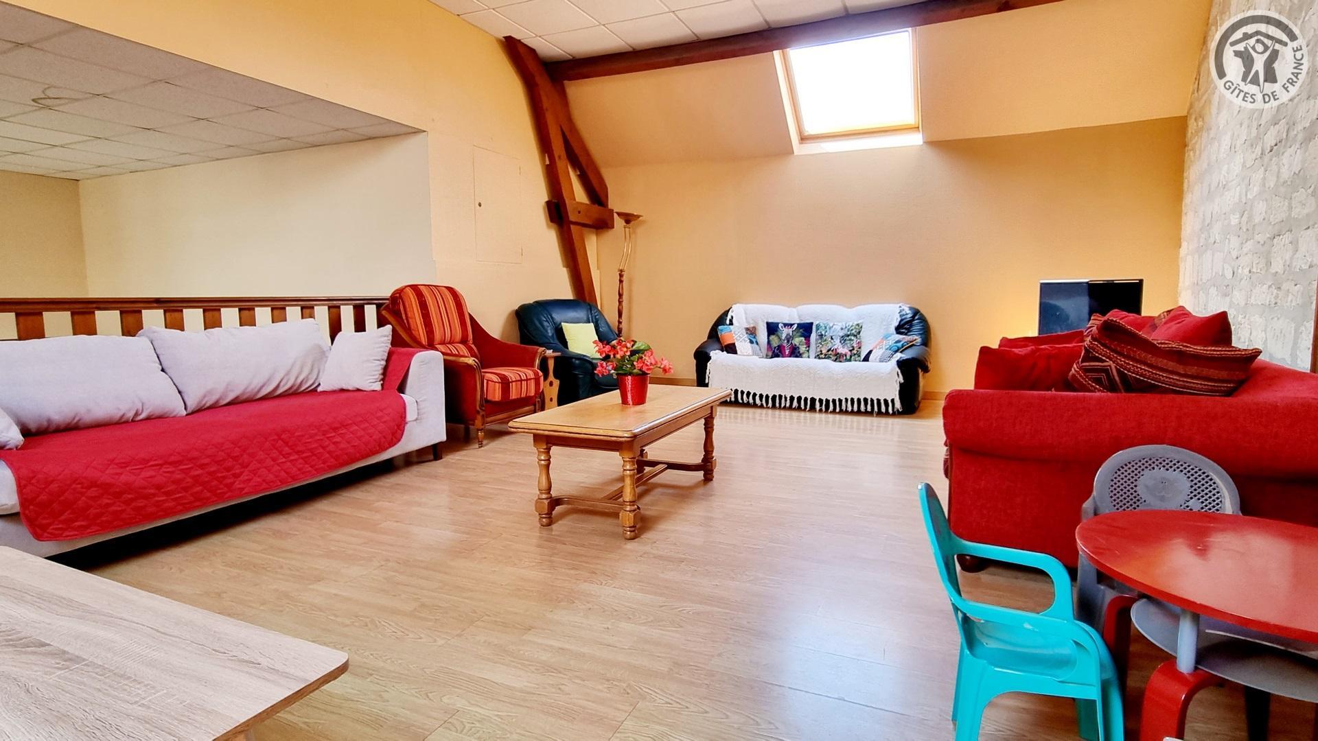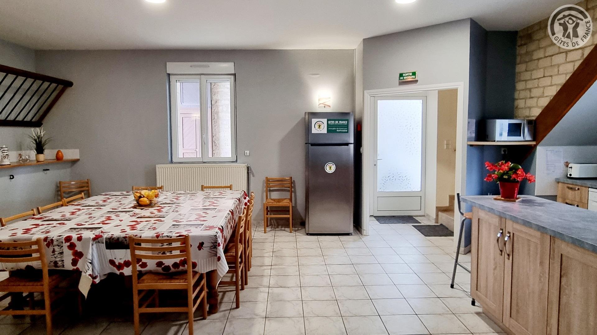 Dans un ancien presbytère, à 100 mètres du centre du village, gîte de séjour (300 m²), avec cour gravillonnée close privative, barbecue et salon de jardin. Places de parking devant le gîte, sur la voie publique, et parking public à 20 mètres. Rez-de-chaussée : Hall d'entrée. Cuisine équipée ouverte sur salle à manger. Salon avec canapé 3 places et TV connectée 108cm.. 1 chambre accessible à tous avec 2 lits et salle d'eau privative avec douche italienne et WC. Chaufferie avec lave-linge et sèche-linge. WC indépendant avec lave-mains. A l'étage : coin détente avec 4 canapés 3 places et 2 fauteuils. 4 chambres dont deux avec 3 lits chacune, une avec 4 lits et une avec 2 lits. 2 salles d'eau (2 douches en 70x70cm et 2 lavabos chacune) et 1 salle d'eau (douche en 70x70cm et 2 lavabos). 2 WC indépendants. Draps et de linge de toilette en supplément. Ménage de fin de séjour compris dans le prix de location. Charges non comprises, chauffage central gaz : 35€/jour. Équipement bébé. Wifi.