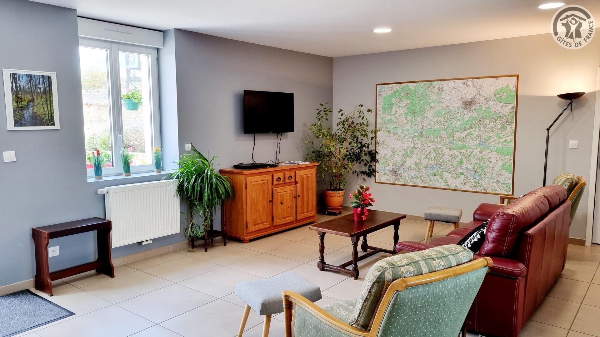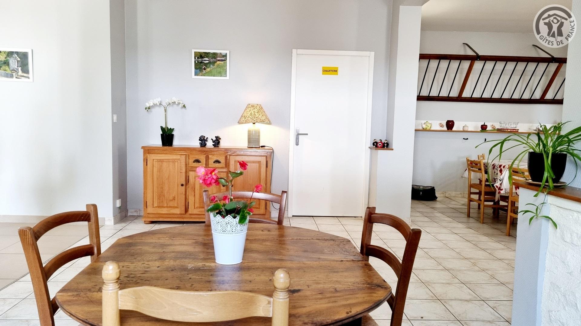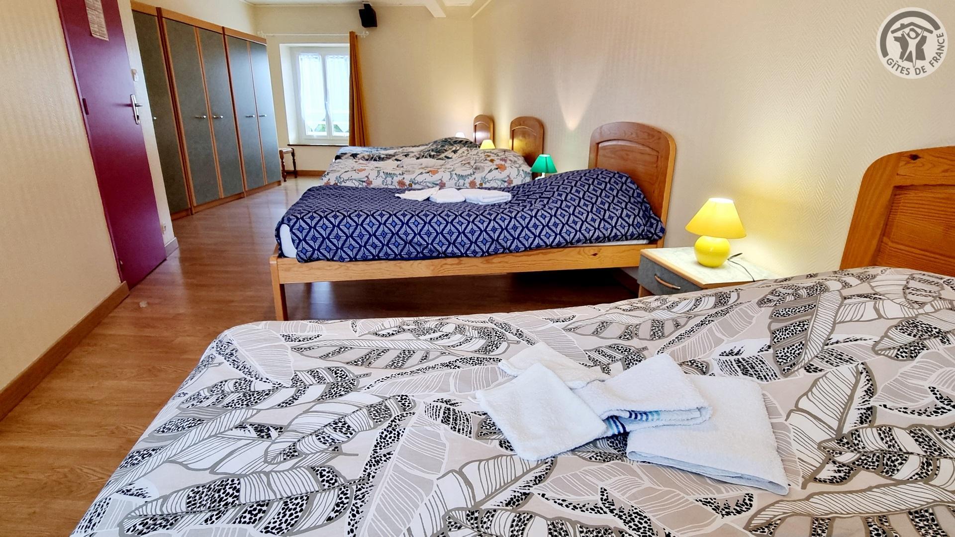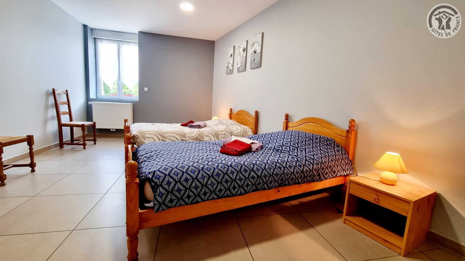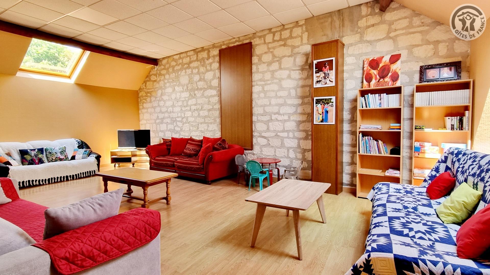Dans un ancien presbytère, à 100 mètres du centre du village, gîte de séjour (300 m²), avec cour gravillonnée close privative, barbecue et salon de jardin. Places de parking devant le gîte, sur la voie publique, et parking public à 20 mètres. Rez-de-chaussée : Hall d'entrée. Cuisine équipée ouverte sur salle à manger. Salon avec canapé 3 places et TV connectée 108cm.. 1 chambre accessible à tous avec 2 lits et salle d'eau privative avec douche italienne et WC. Chaufferie avec lave-linge et sèche-linge. WC indépendant avec lave-mains. A l'étage : coin détente avec 4 canapés 3 places et 2 fauteuils. 4 chambres dont deux avec 3 lits chacune, une avec 4 lits et une avec 2 lits. 2 salles d'eau (2 douches en 70x70cm et 2 lavabos chacune) et 1 salle d'eau (douche en 70x70cm et 2 lavabos). 2 WC indépendants. Draps et de linge de toilette en supplément. Ménage de fin de séjour compris dans le prix de location. Charges non comprises, chauffage central gaz : 35€/jour. Équipement bébé. Wifi.