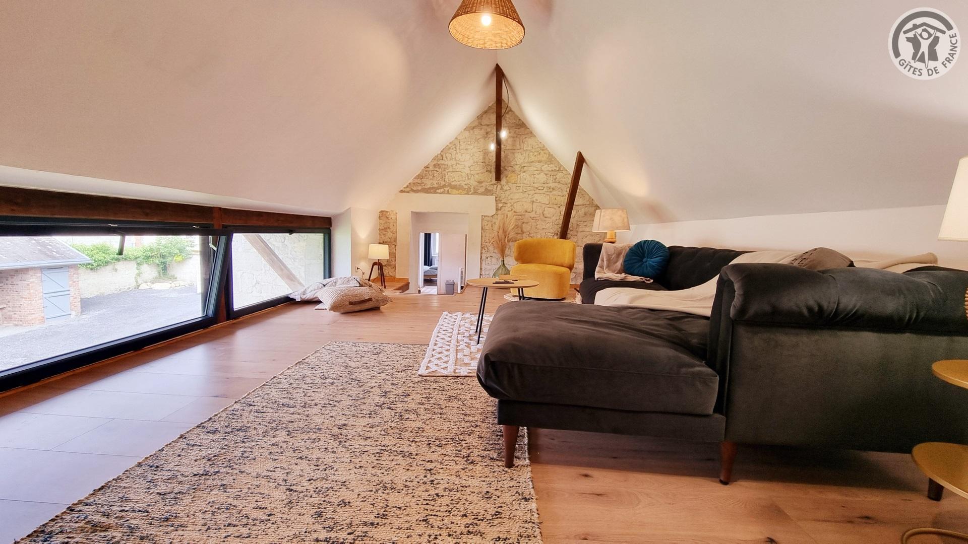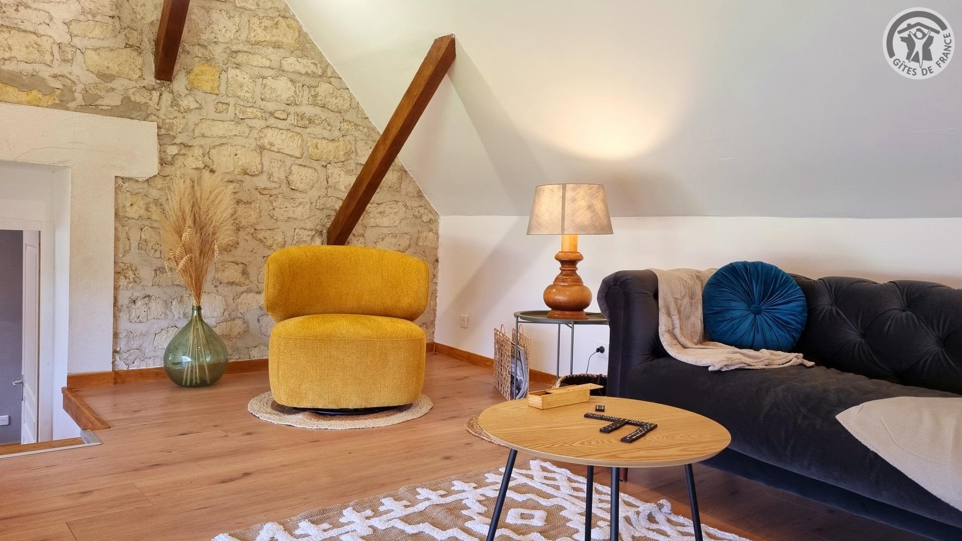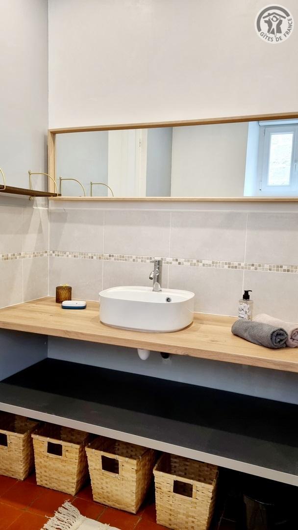 Maison indépendante située à 100 mètres du centre du village. Accès par un escalier extérieur. Sur le même niveau, vous trouverez une cuisine équipée (four, 4 plaques vitrocéramiques, réfrigérateur avec partie congélateur et micro-ondes, lave-linge), avec espace repas. WC indépendant. Une chambre aménagée avec un lit 140x190cm. Une seconde chambre aménagée avec 2 lits 90x190cm. Une salle d'eau avec douche à l'italienne 1.90x1m, lave-linge, une vasque. Accès par quelques marches à un espace salon avec canapé et TV 80cm, ainsi qu'un accès à une salle de jeux pour enfants (hauteur de passage 1.50m). Cour fermée privative de 250 m² et parking privatif pour plusieurs véhicules sécurisé avec un portail manuel. Salon de jardin, plancha électrique. Gîte en TOUT INCLUS (charges énergétiques, draps, linge de toilette et ménage fin de séjour). Hébergement sans internet.