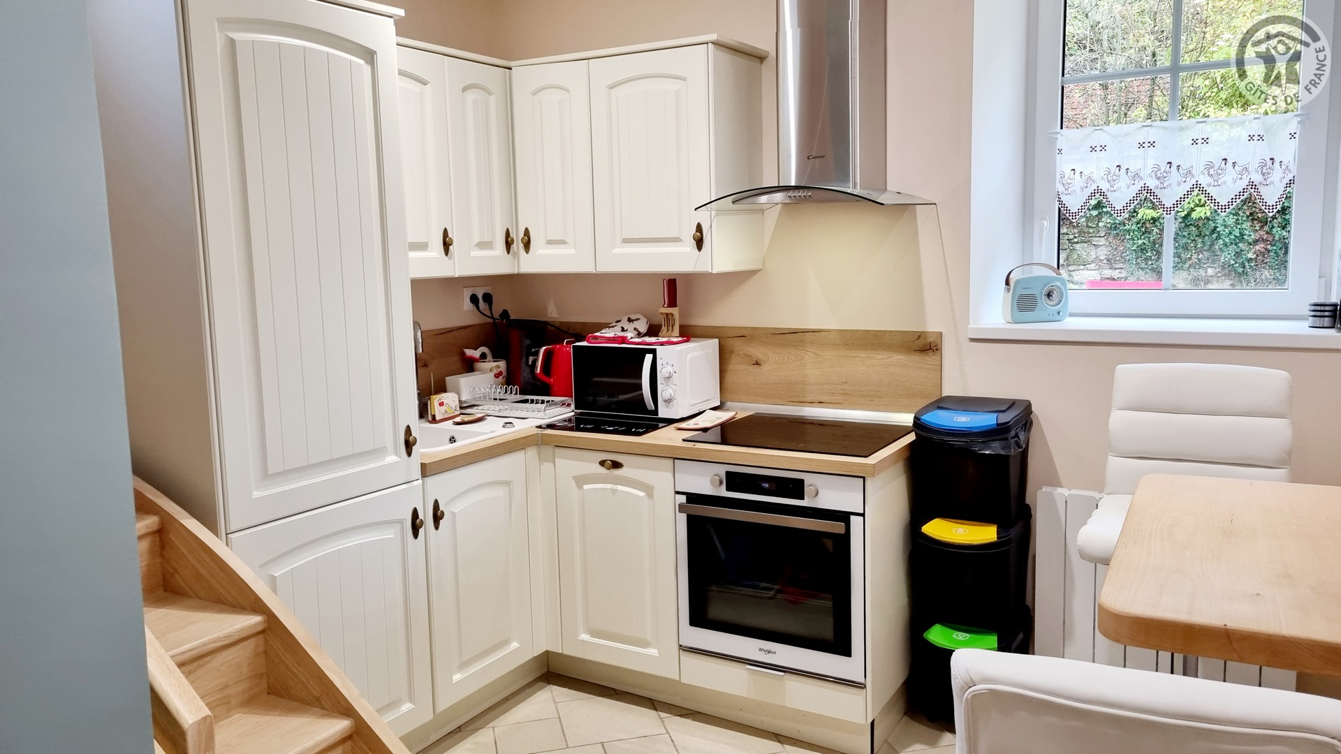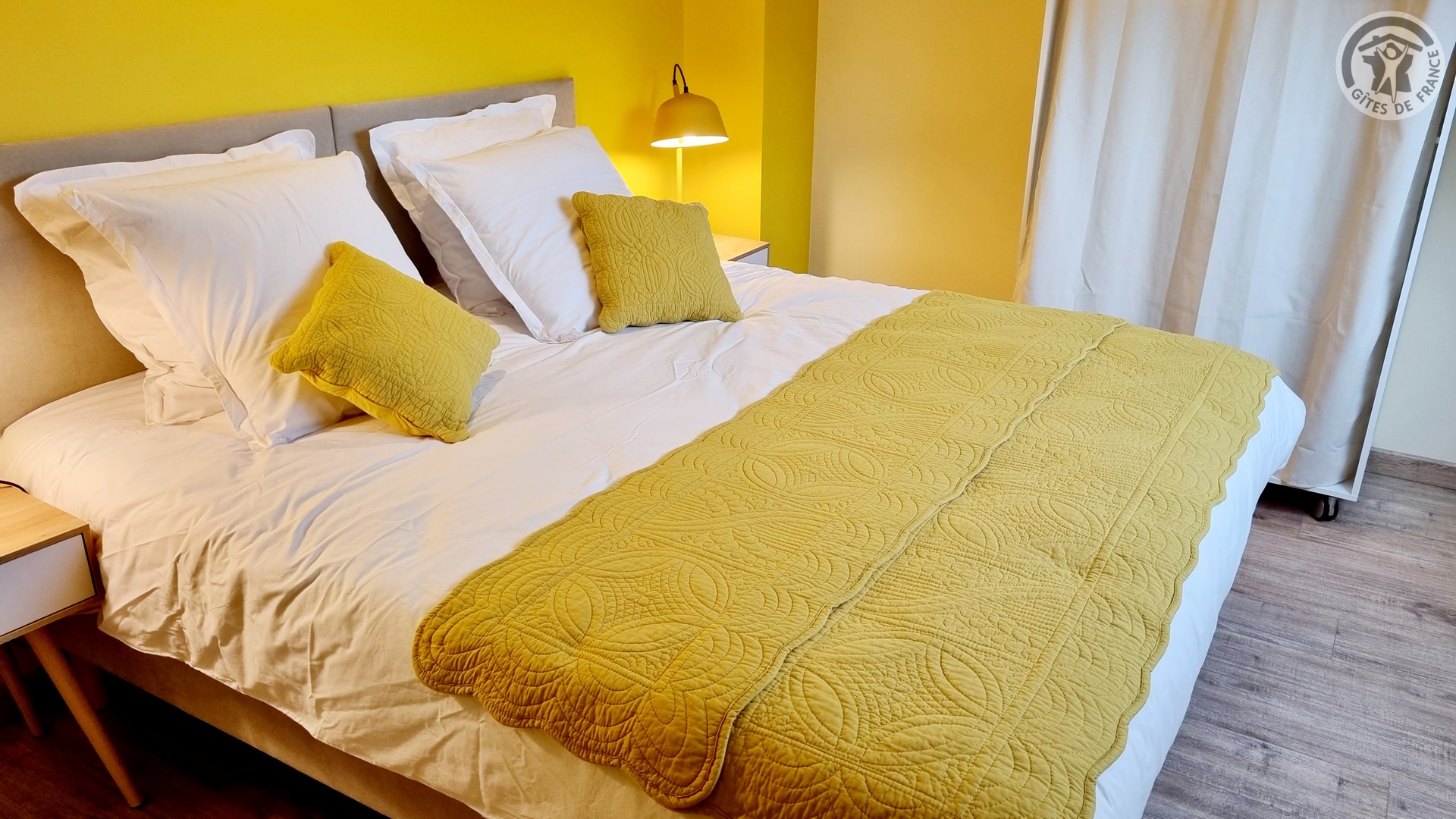 Gîte de 8 personnes. 2 jardins clos de 180 m² et de 900 m² et avec balançoire. 2 terrasses de 13,5 m² et de 17 m² et avec salons de jardin et barbecues. Places de parking privatives pour 4 voitures. Rez-de-chaussée : 2 cuisines équipées (2 plaques à induction, 2 fours , 2 réfrigérateurs encastrés avec petit compartiment congélateur, 2 lave-vaisselles, 2 hottes aspirantes,2 cafetières à filtre et 2 à dosette), 2 salons dont un avec un grand canapé en angle, 1 poêle à bois et 2 TV écran plat 109cm. Buanderie avec lave-linge, sèche-linge et équipement de nettoyage. Petite salle d'eau accessible avec douche italienne 90x80cm et WC. WC indépendant. Étage : 4 chambres avec chacune 1 lit 180x200, séparable en 2 lits 90x200. 1 salle d'eau avec 2 vasques et cabine de douche 100x80cm et 1 salle d'eau avec douche 90x90cm, WC et lave-linge. WC indépendant. Gîte tout compris (lits faits à l'arrivée, linge de toilette fournis, ménage de fin de séjour et charges énergétiques inclus). WIFI.