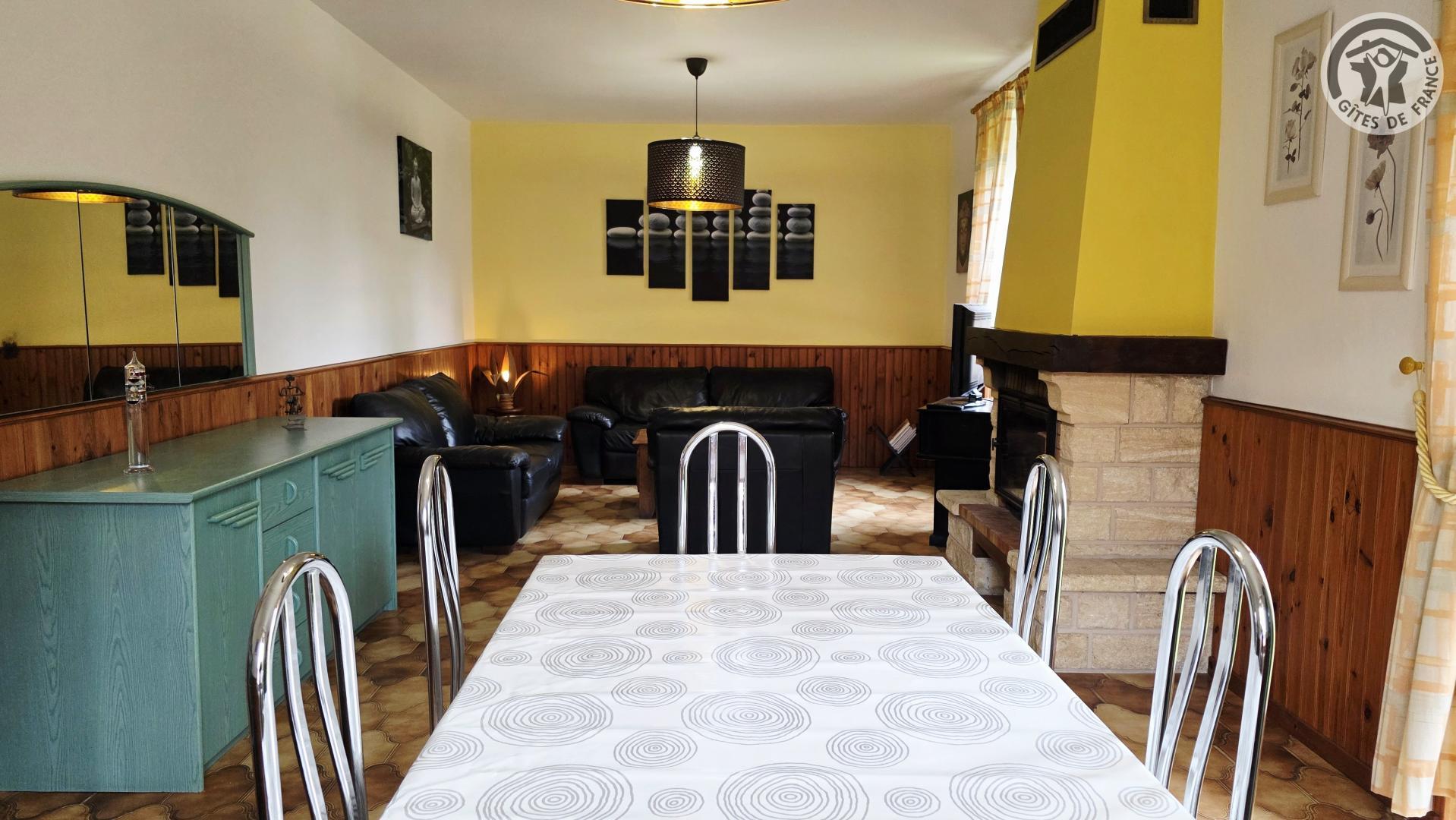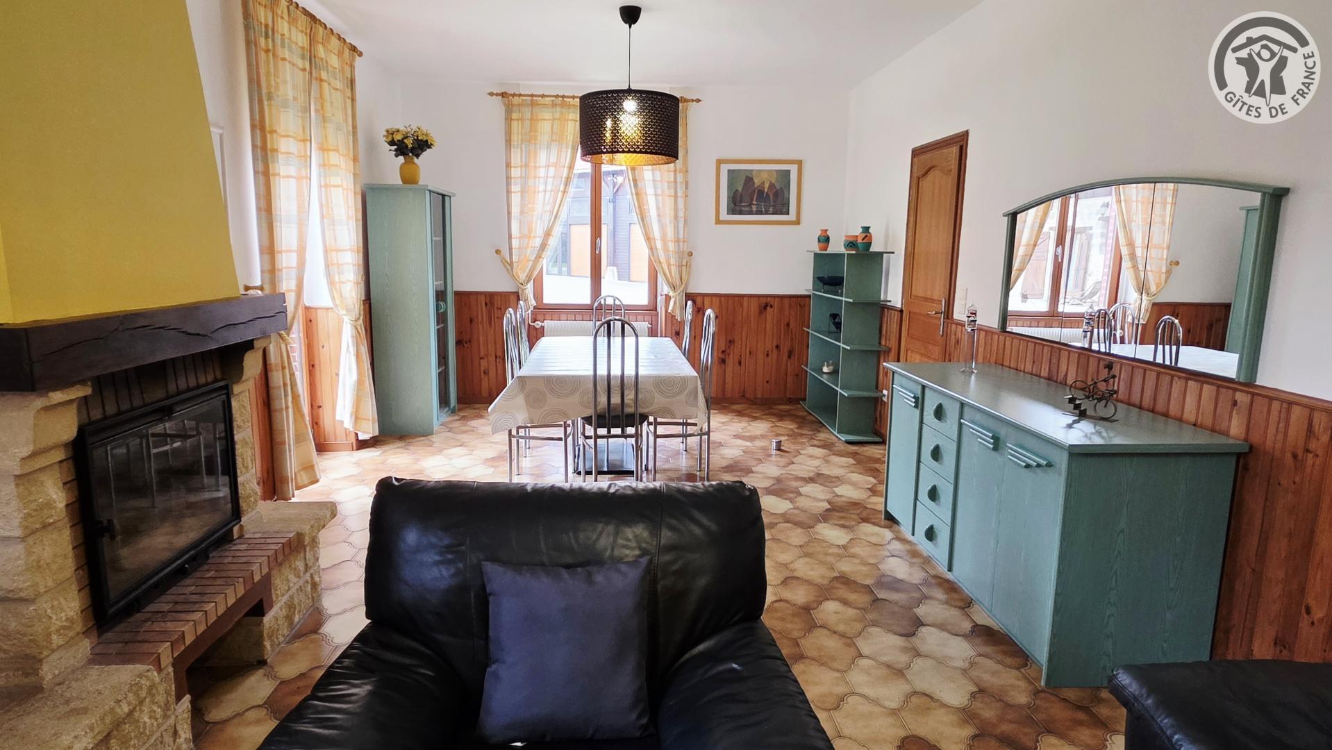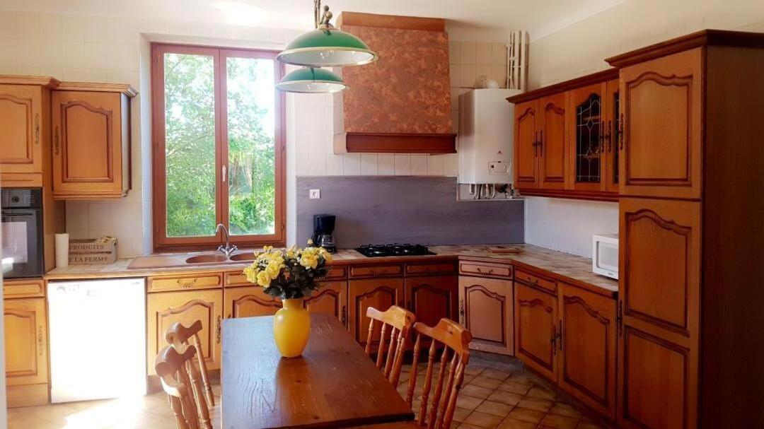 Gîte de 160 m² dans le village Le terrain privatif, d'une superficie de 1 000 m², est entièrement clos et comprend une balançoire. De plus, il y a une cour fermée commune aux propriétaires, avec un garage pouvant accueillir une voiture. Rez-de-chaussée : Cuisine (plaque de cuisson avec 4 feux à gaz, hotte aspirante, four intégré, lave-vaisselle, réfrigérateur avec compartiment congélateur, etc). Salon/salle à manger avec TV 80 cm et cheminée décorative (utilisation interdite). Petit salon avec jeux pour enfants. WC indépendant avec lave-mains. A l'étage : Trois chambres dont deux avec un lit double en 140x190cm chacune, et une chambre avec deux lits simples en 90x190cm. Salle de bains avec baignoire, cabine de douche en 80x80cm, WC. Chauffage central au gaz selon consommation. Pêche en étang à 1 km (accès payant : 8€/personne/jour). Connexion WIFI (débit fibre).