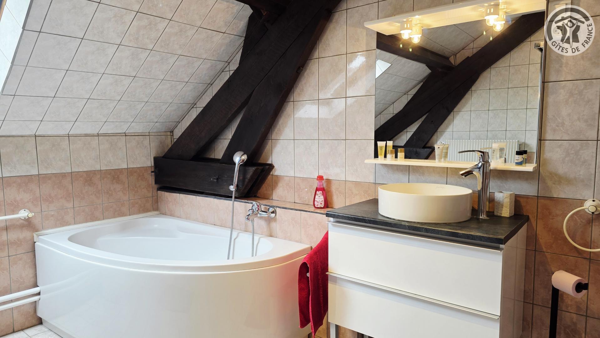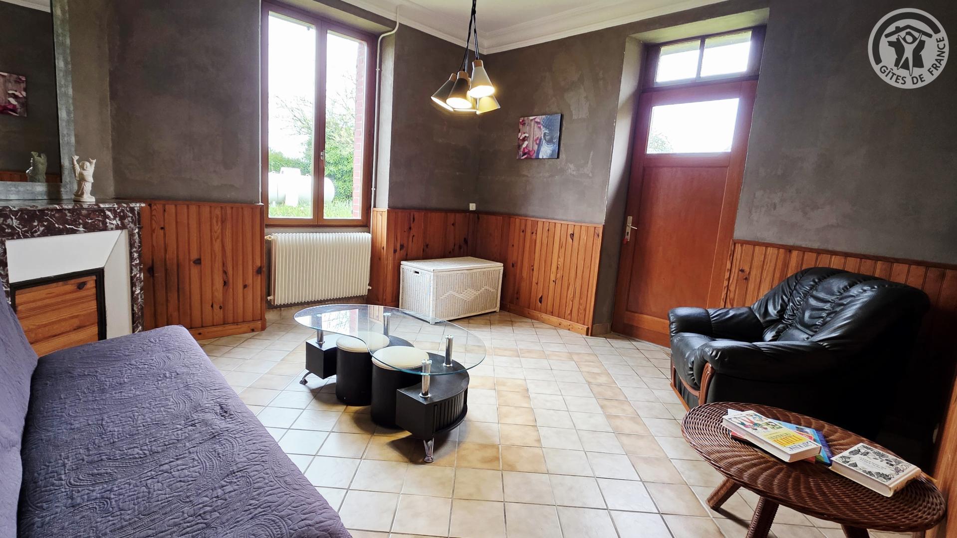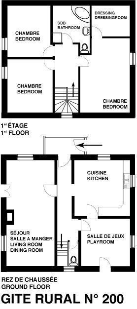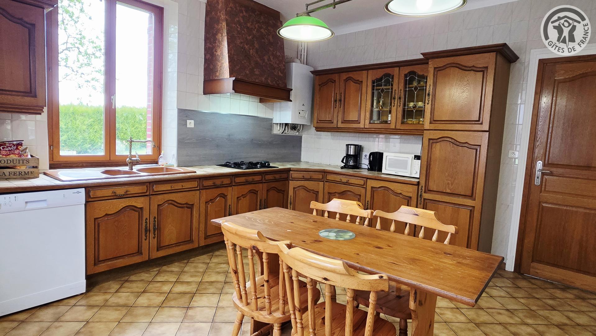 Gîte de 160 m² dans le village Le terrain privatif, d'une superficie de 1 000 m², est entièrement clos et comprend une balançoire. De plus, il y a une cour fermée commune aux propriétaires, avec un garage pouvant accueillir une voiture. Rez-de-chaussée : Cuisine (plaque de cuisson avec 4 feux à gaz, hotte aspirante, four intégré, lave-vaisselle, réfrigérateur avec compartiment congélateur, etc). Salon/salle à manger avec TV 80 cm et cheminée décorative (utilisation interdite). Petit salon avec jeux pour enfants. WC indépendant avec lave-mains. A l'étage : Trois chambres dont deux avec un lit double en 140x190cm chacune, et une chambre avec deux lits simples en 90x190cm. Salle de bains avec baignoire, cabine de douche en 80x80cm, WC. Chauffage central au gaz selon consommation. Pêche en étang à 1 km (accès payant : 8€/personne/jour). Connexion WIFI (débit fibre).