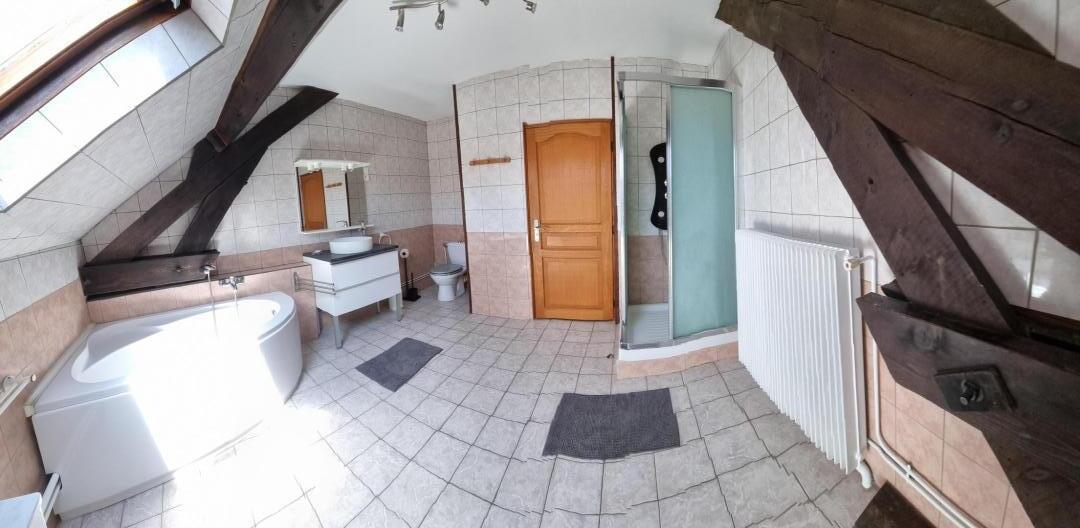 Gîte de 160 m² dans le village Le terrain privatif, d'une superficie de 1 000 m², est entièrement clos et comprend une balançoire. De plus, il y a une cour fermée commune aux propriétaires, avec un garage pouvant accueillir une voiture. Rez-de-chaussée : Cuisine. Salon/salle à manger avec lecteur DVD, connexion WIFI gratuite. Salle de détente. WC. A l'étage : 3 chambres dont 1 avec décoration plus adaptée aux enfants (une avec 1 lit 2 personnes 140x190, une autre avec 1 lit 2 personnes 140x190, une avec 2 lits 1 personne 90x190, 1 lit bébé). Salle de bains avec baignoire, douche, WC. Chauffage central au gaz selon consommation. Pêche en étang à 1 km (accès payant : 8€/personne/jour). Connexion WIFI (débit fibre).
