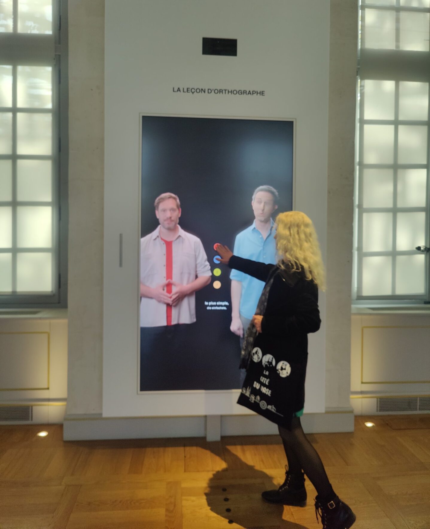 Sans hésiter, Valérie cite les deux salles les plus ludiques, celles qui plongent les visiteurs dans les pièges et subtilités de la langue : des mots, régionalismes (y compris le fameux débat pain au chocolat / chocolatine), dictée collaborative, jeux de synonymes et d’homonymes…