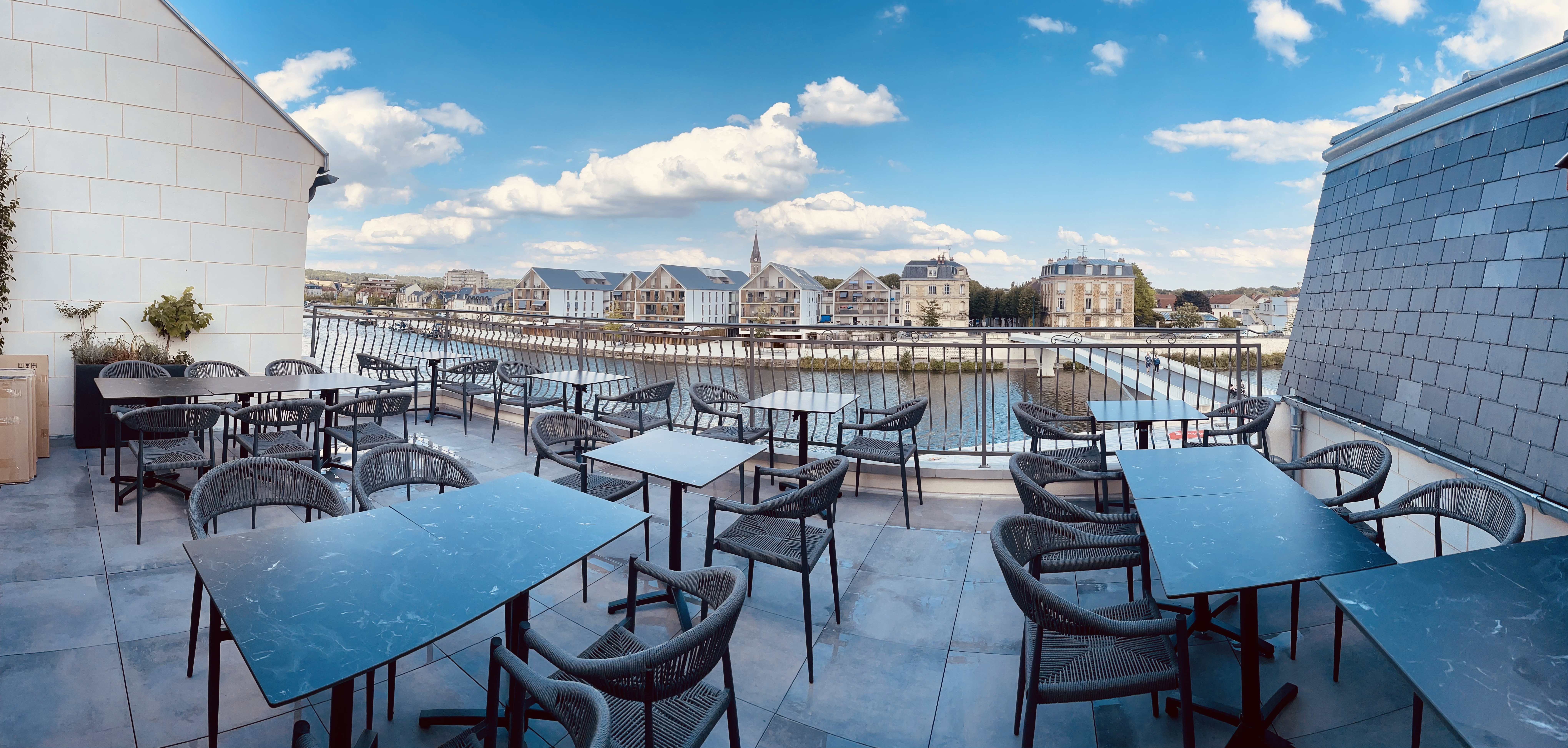L'établissement La Passerelle à la décoration élégante propose une offre de restauration traditionnelle et possède un magnifique roof top vue sur les berges de l'Aisne. Terrasse estivale. Produits frais.